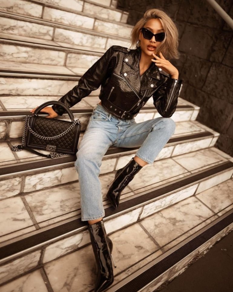 Рианна в косухе.
