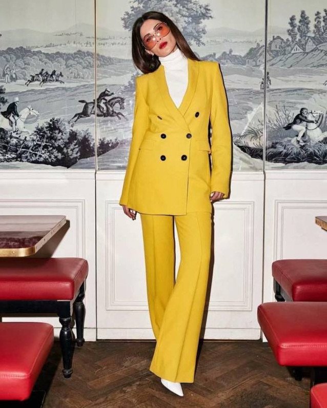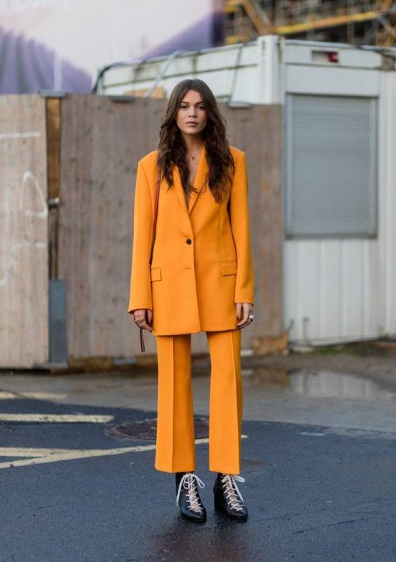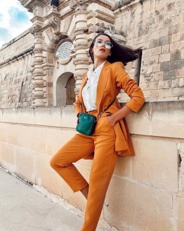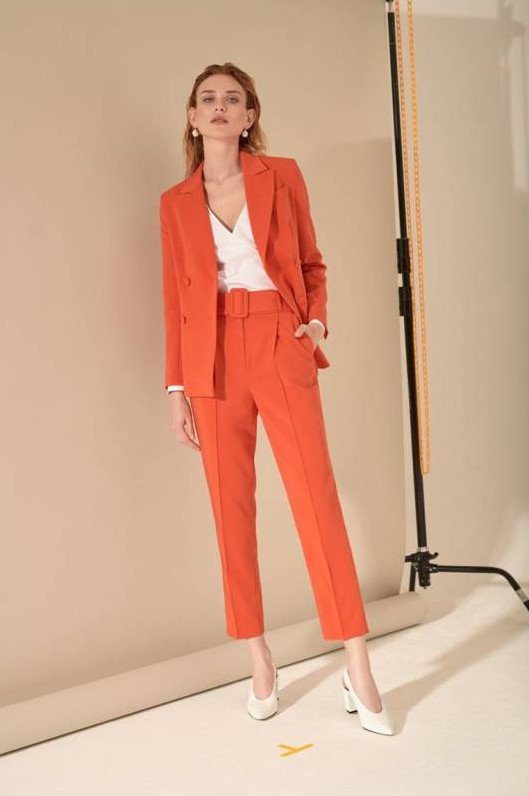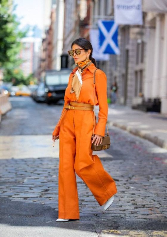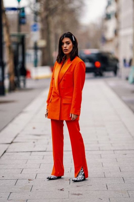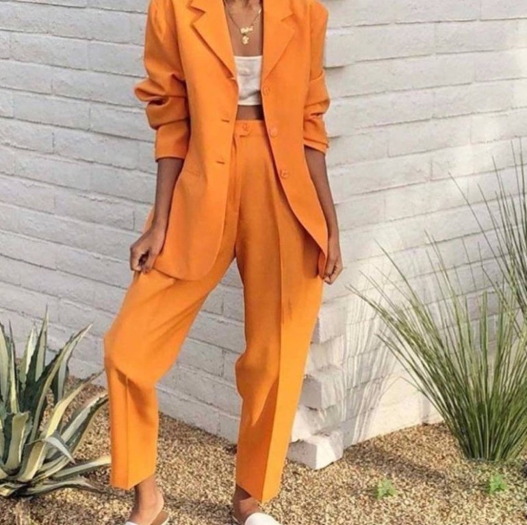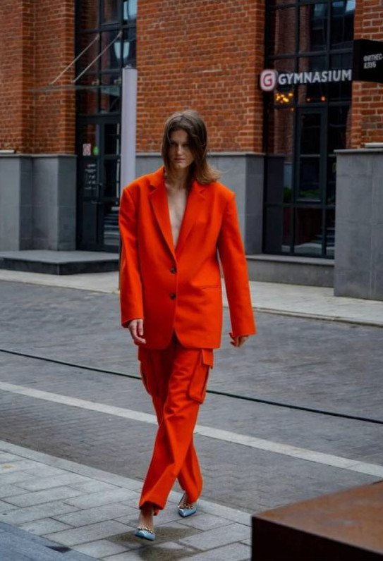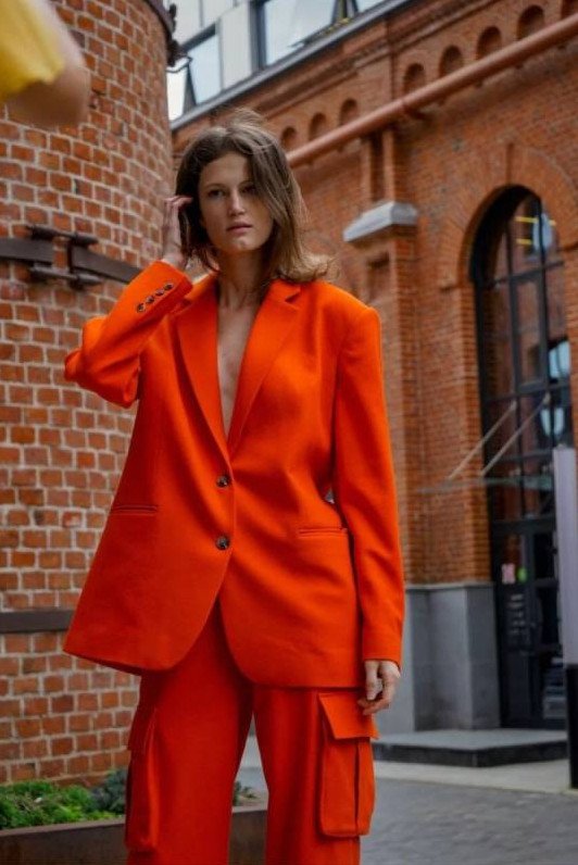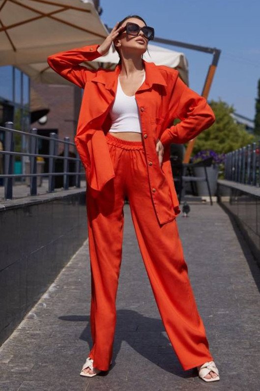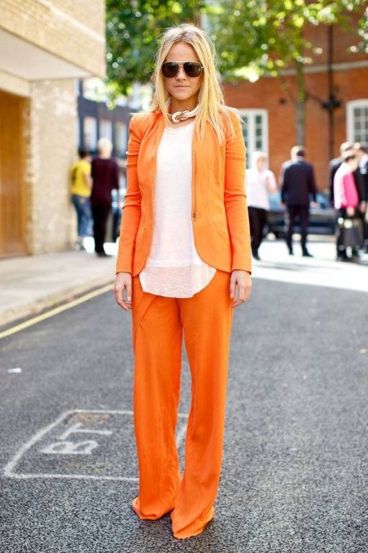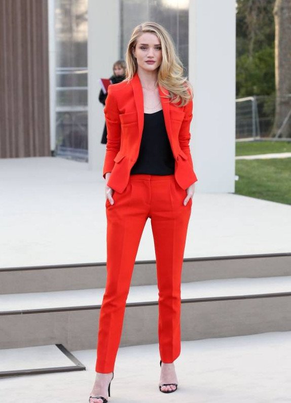 Рози Хантингтон-Уайтли оранжевый брючный костюмчик.