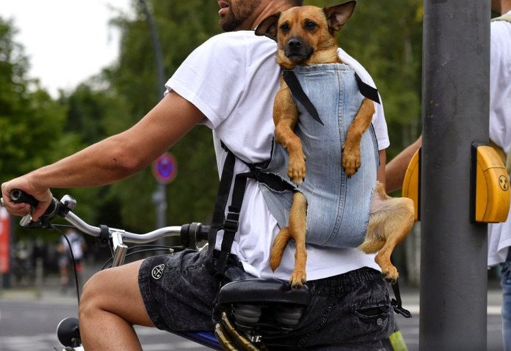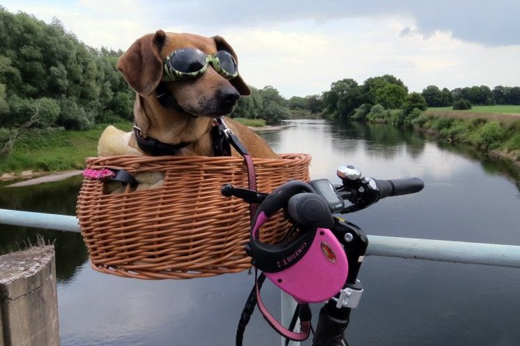 Собака на велике.