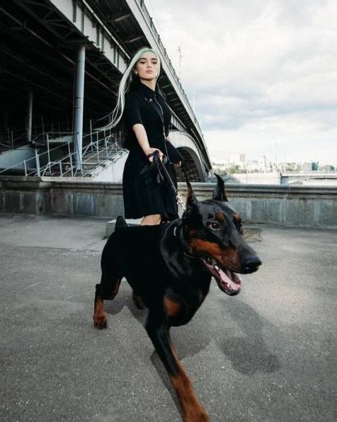 Зои Дойч с доберманом.