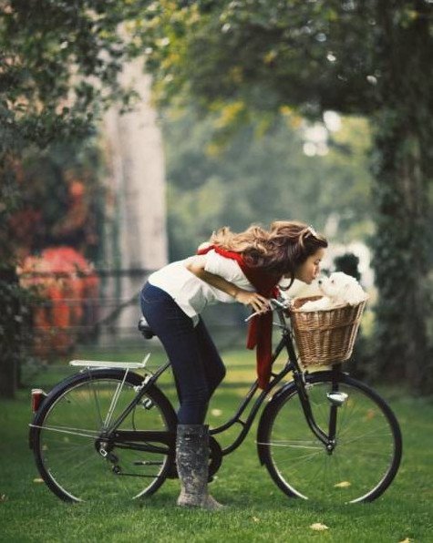 Девушка на велике с собакой.