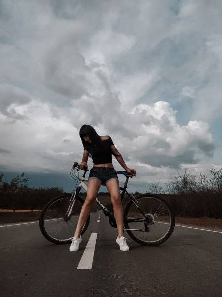 Девушка эротика с брюнеткой на велике.