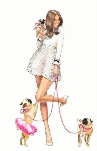 Нарисованная девушка с собачкой.