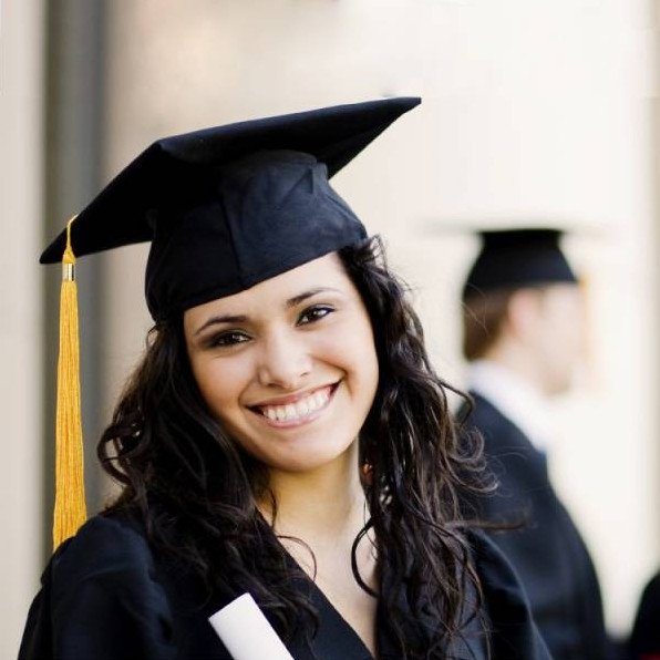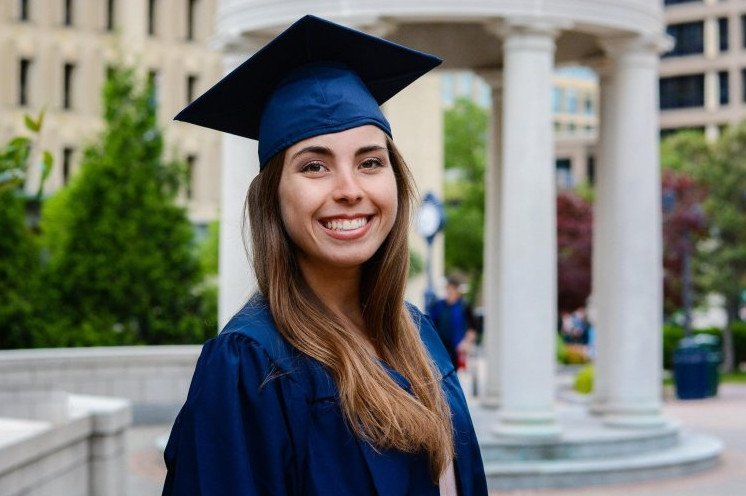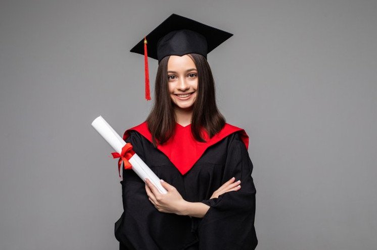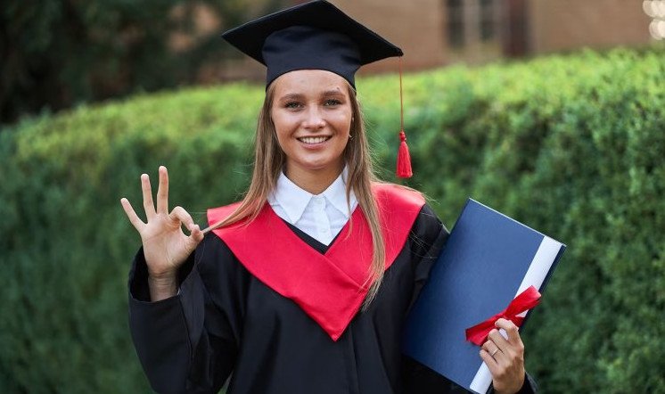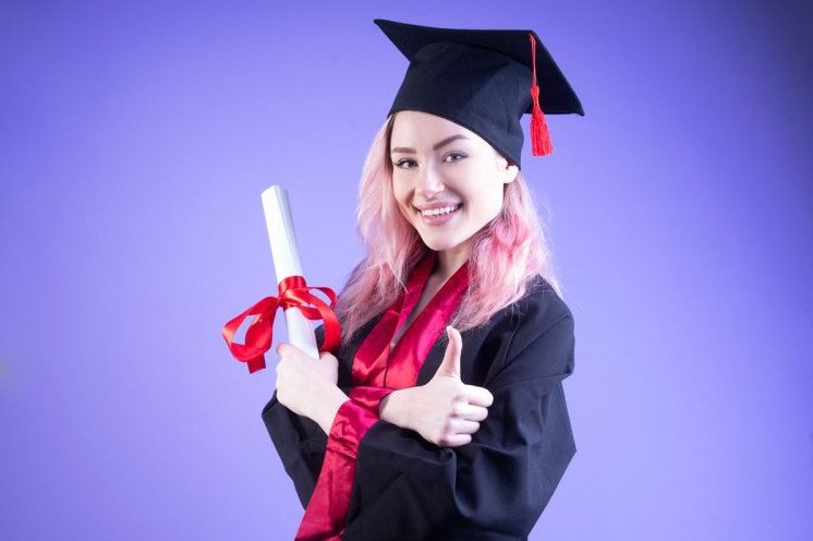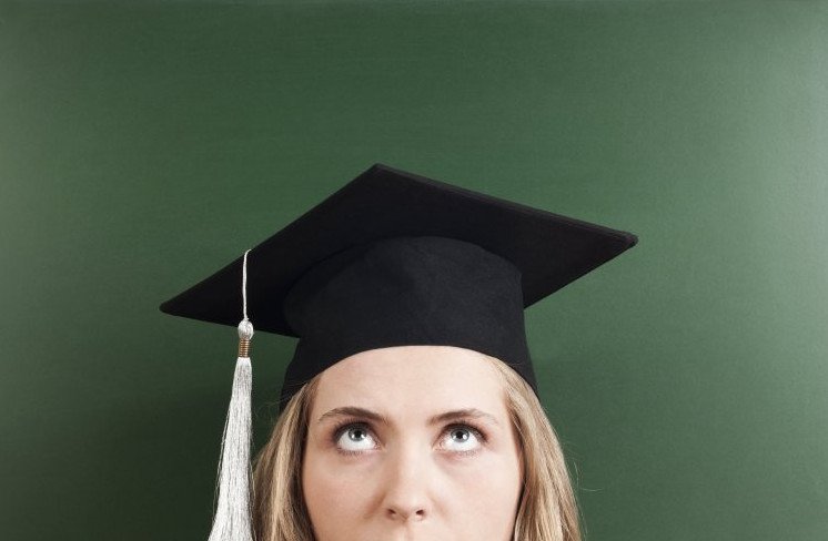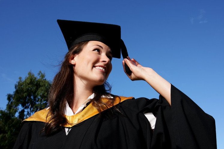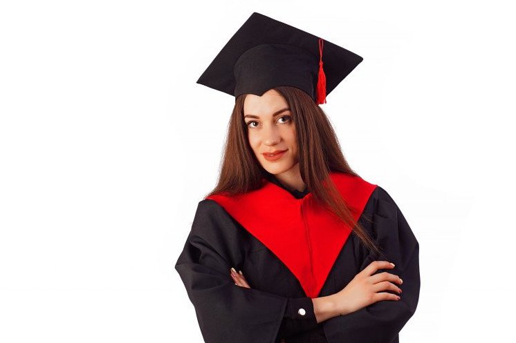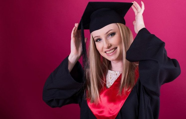 Девушка в шапке магистра.