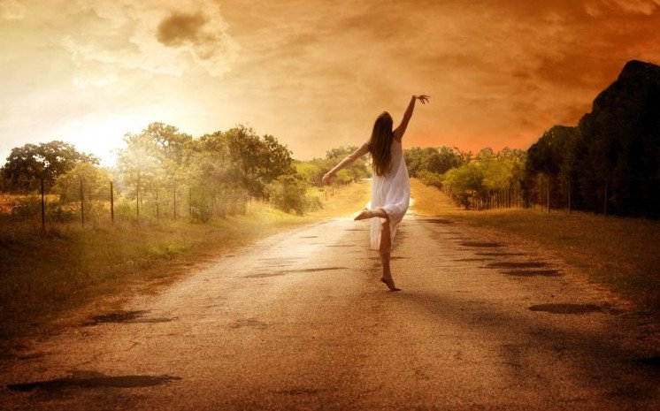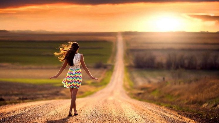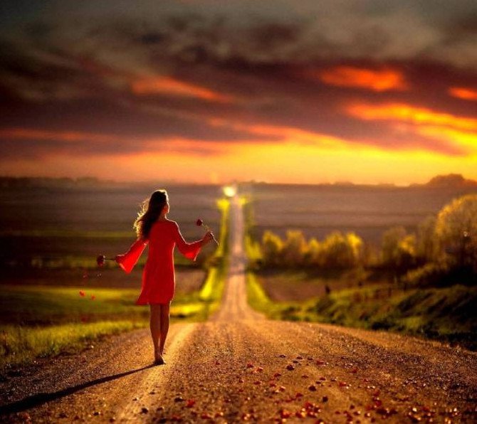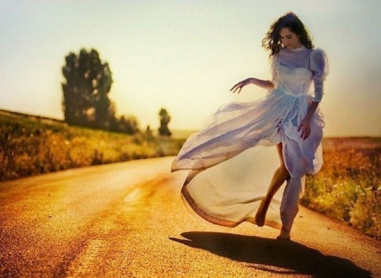 Девушка идет по дороге.