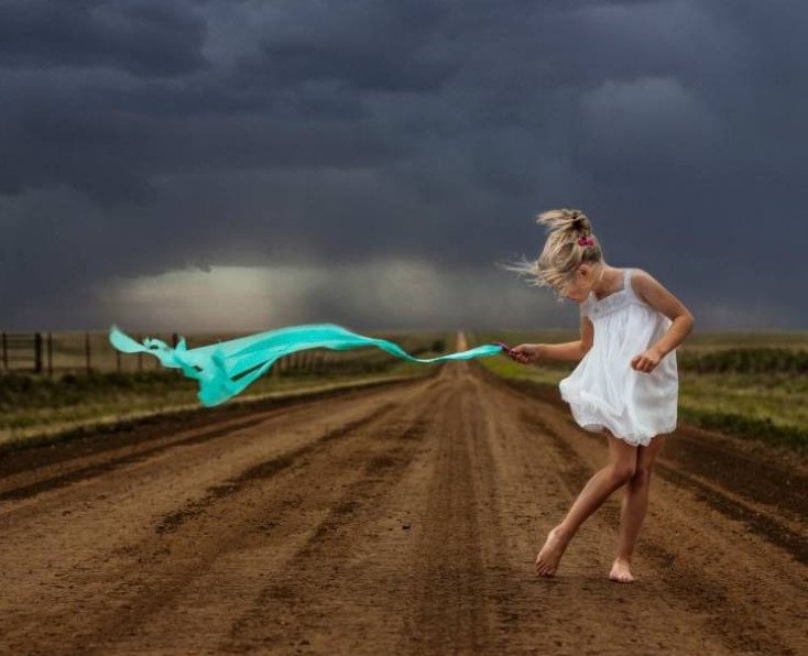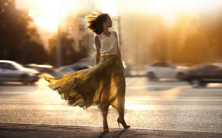 Девушка на ветру.