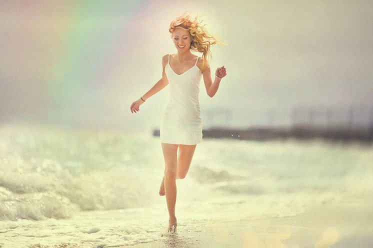 Счастливая девушка бежит.