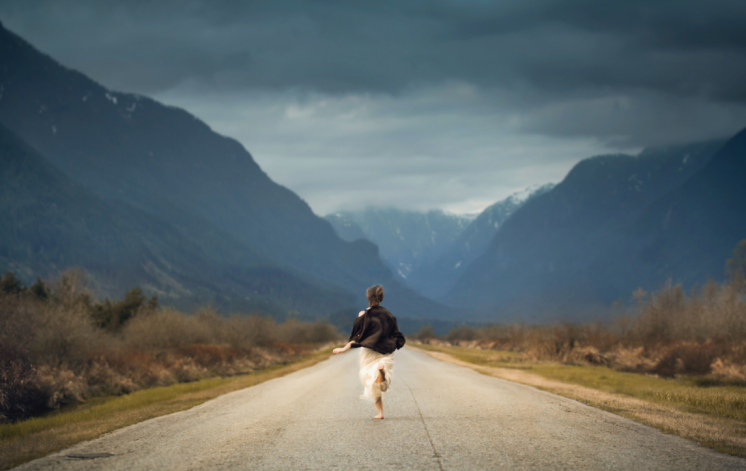 Девушка бежит по дороге.
