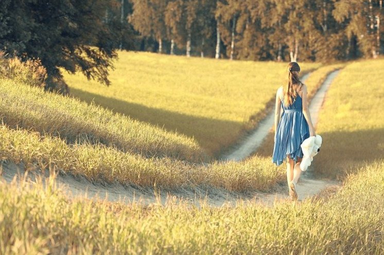 Девушка идет по тропинке.