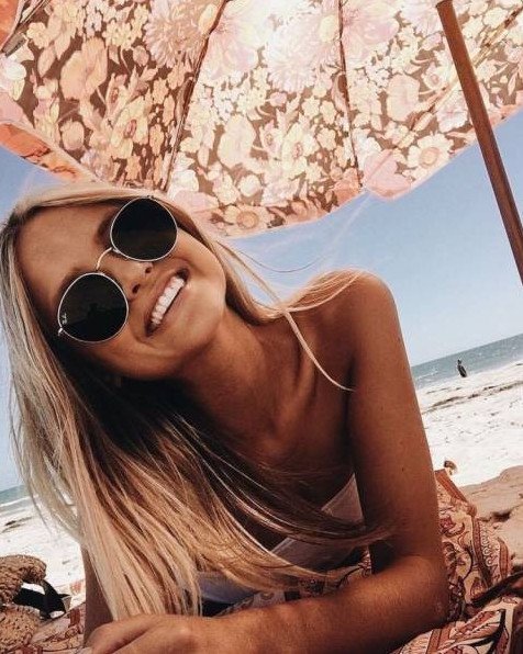 Блондиночка в солнцезащитных очках.