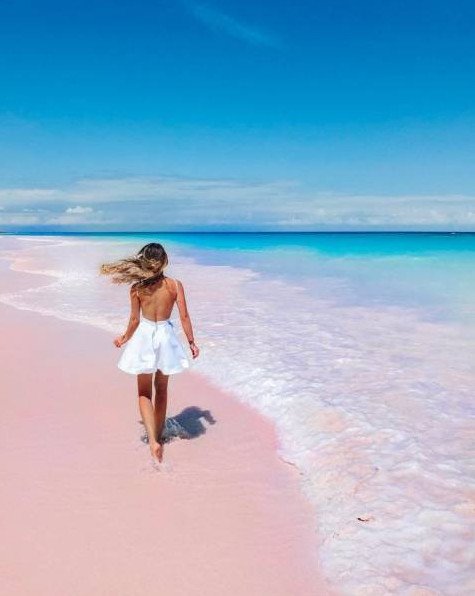 Розовый пляж Багамы.