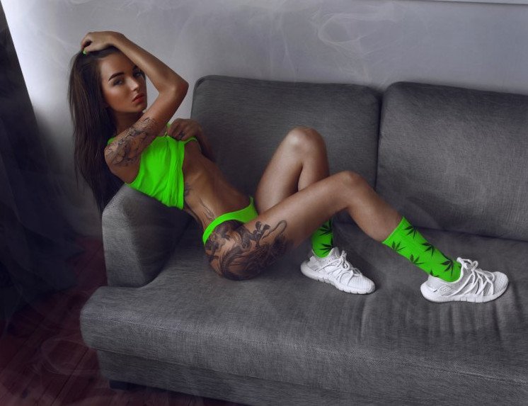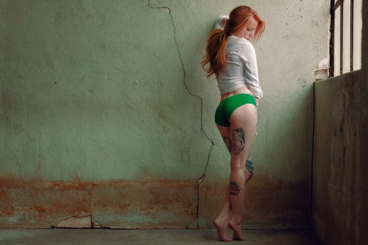 Худая эротика с брюнеткой в зеленоватых трусиках.