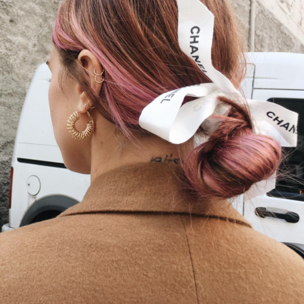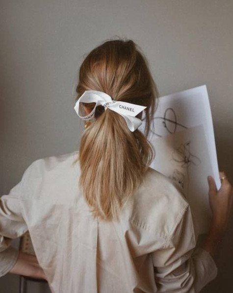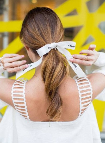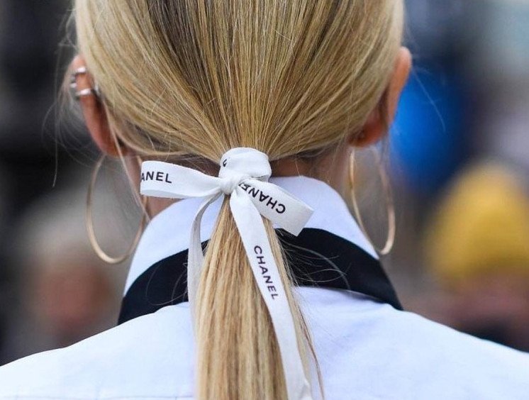 Лента Шанель в волосах.