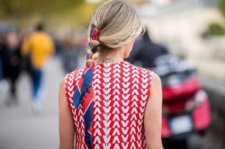 Платок вплетенный в косу.