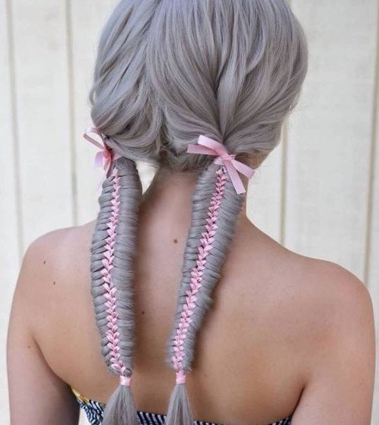 Коса с лентой.