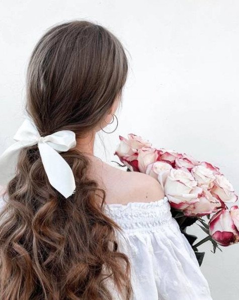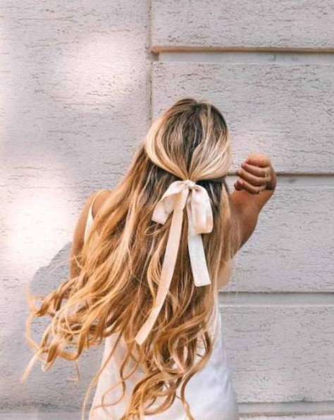 Атласная лента в волосах.