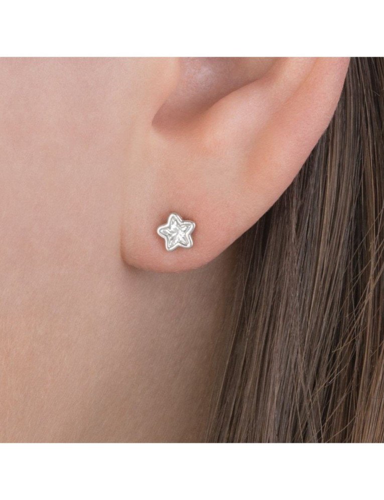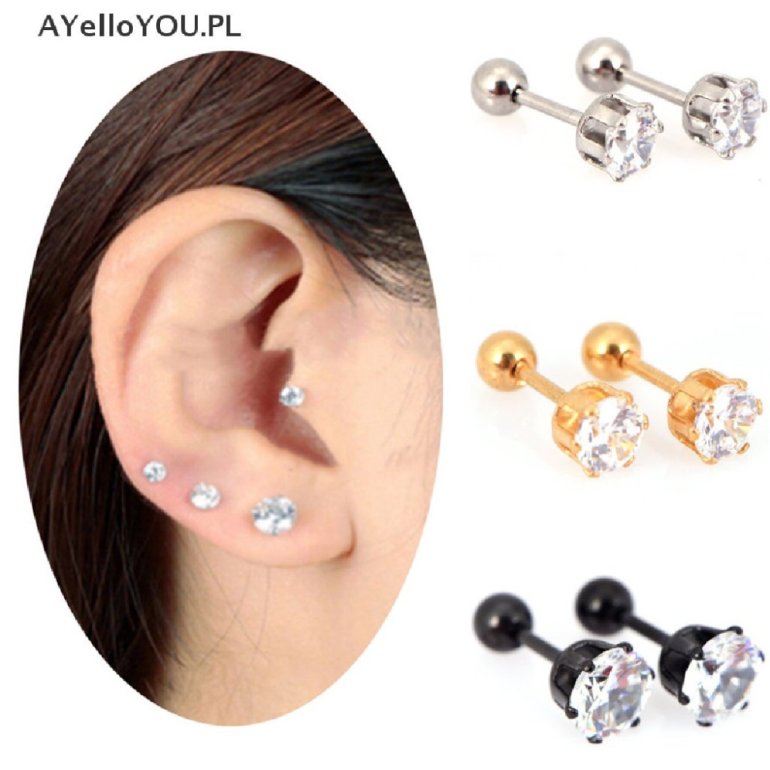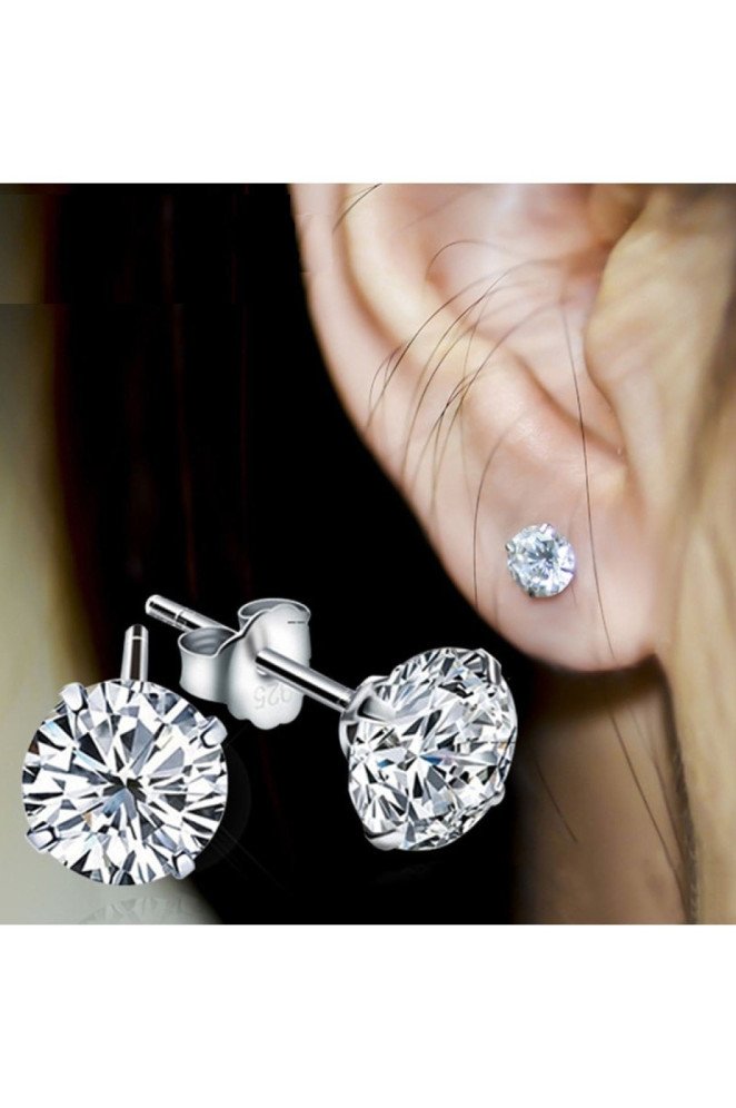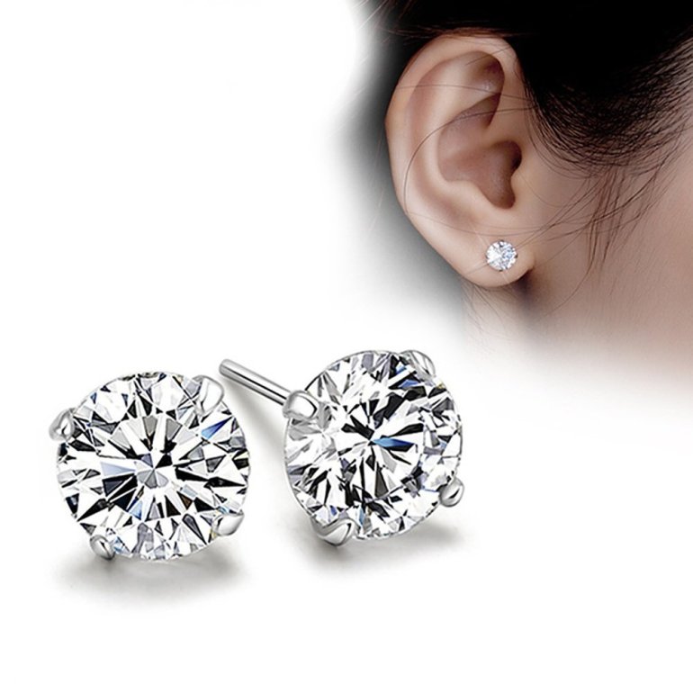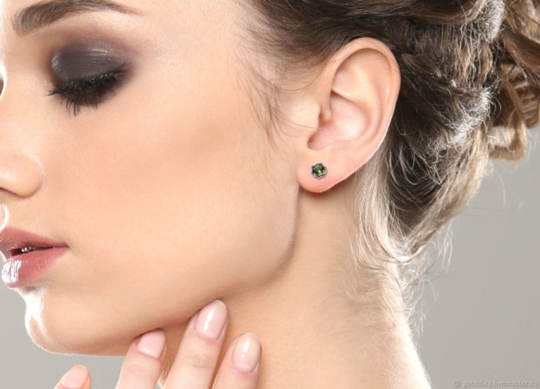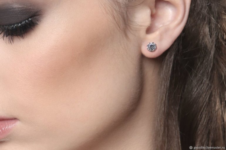 Серьги гвоздики на ушах.