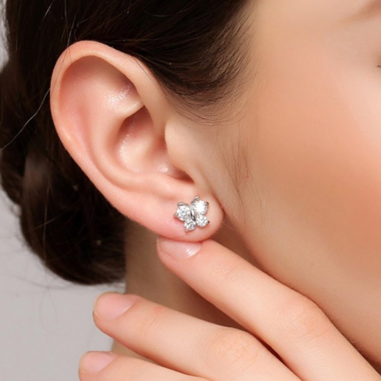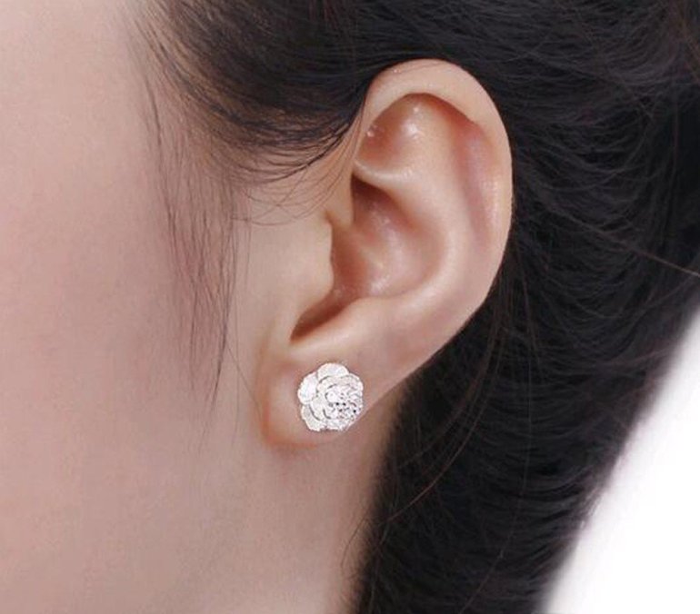 Сережки гвоздики на ушах.