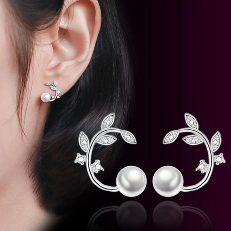 Серьги пусеты на ушах.