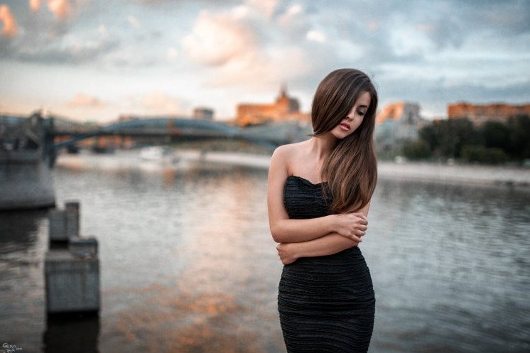 Девушка на фоне города.