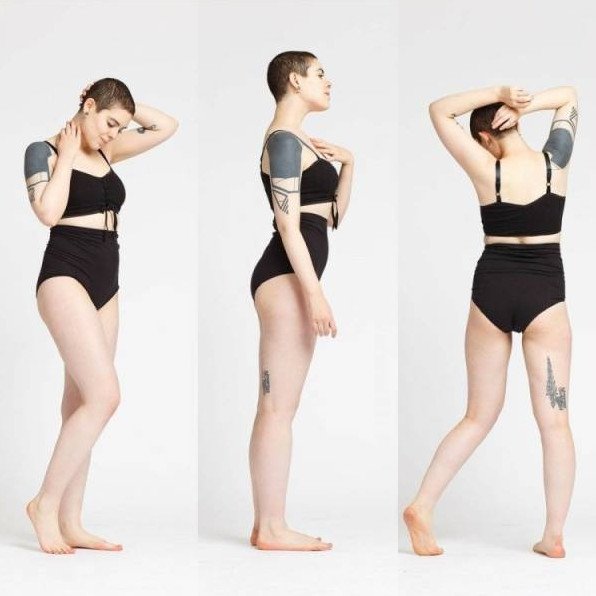 Красивая девушка в купальнике в полный рост.