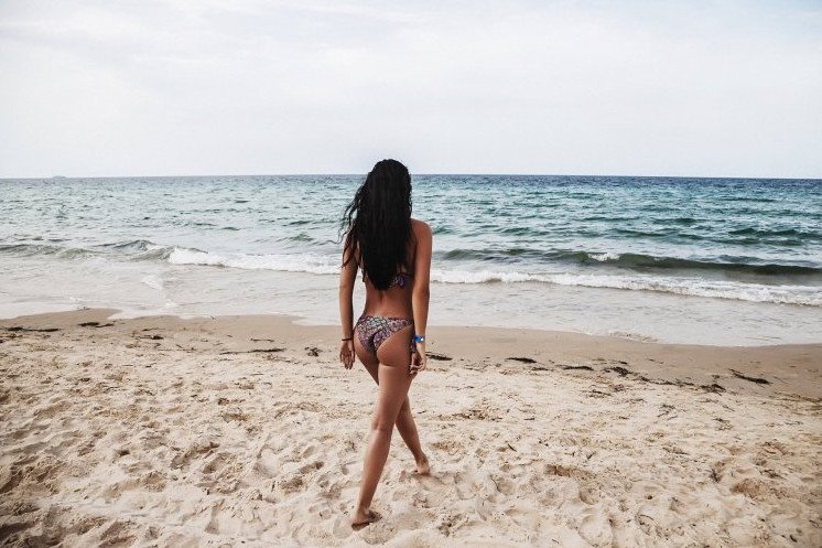 Эротика с брюнеткой на море со спины.
