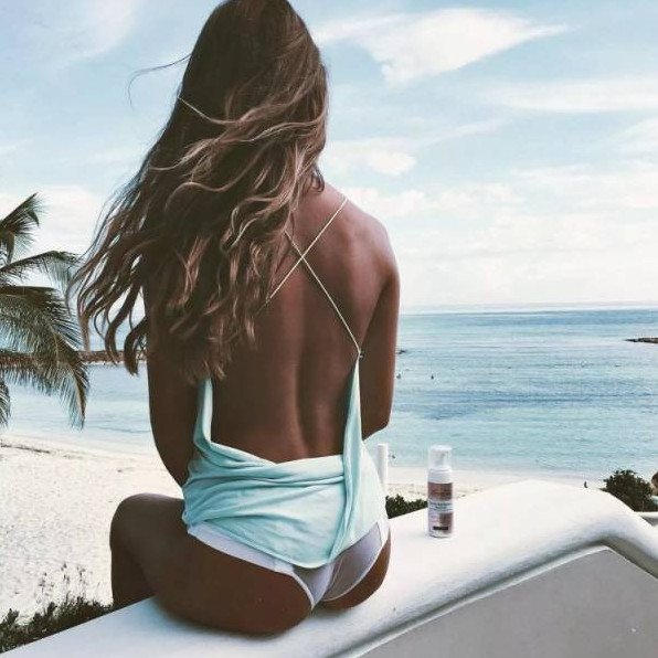 Девушка на море со спины.