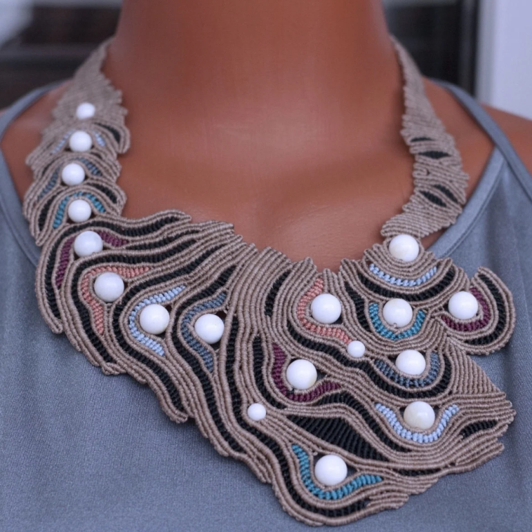 Макраме колье с бусинами.