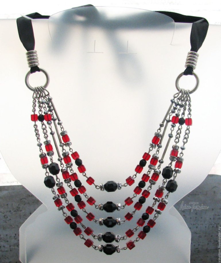 Бусы с цепочками и бусинами.
