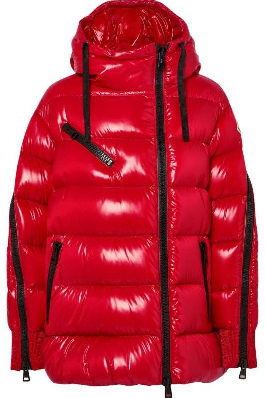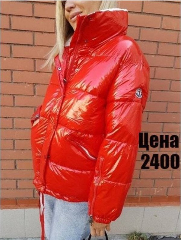 Монклер очень красный пуховик глянцевый.