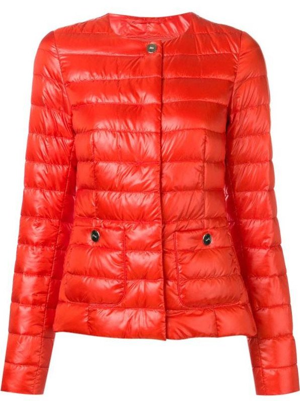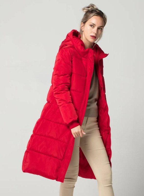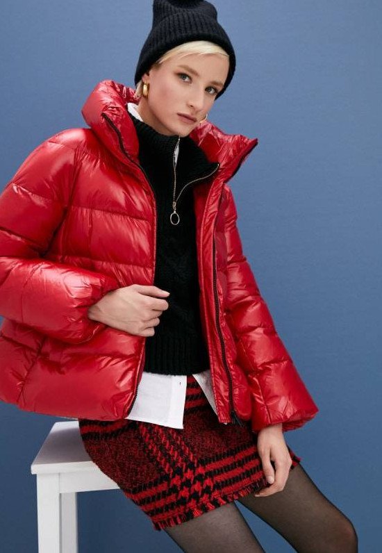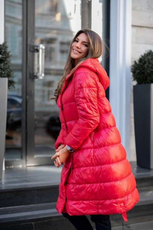 Очень красный пуховик дамский.