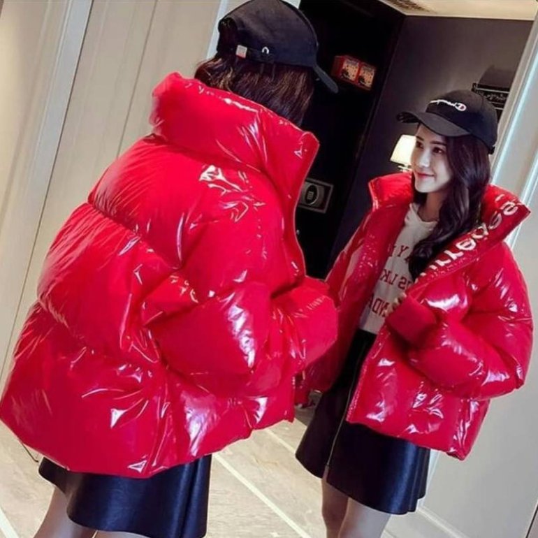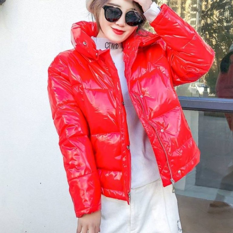 Лакированный пуховик дамский.