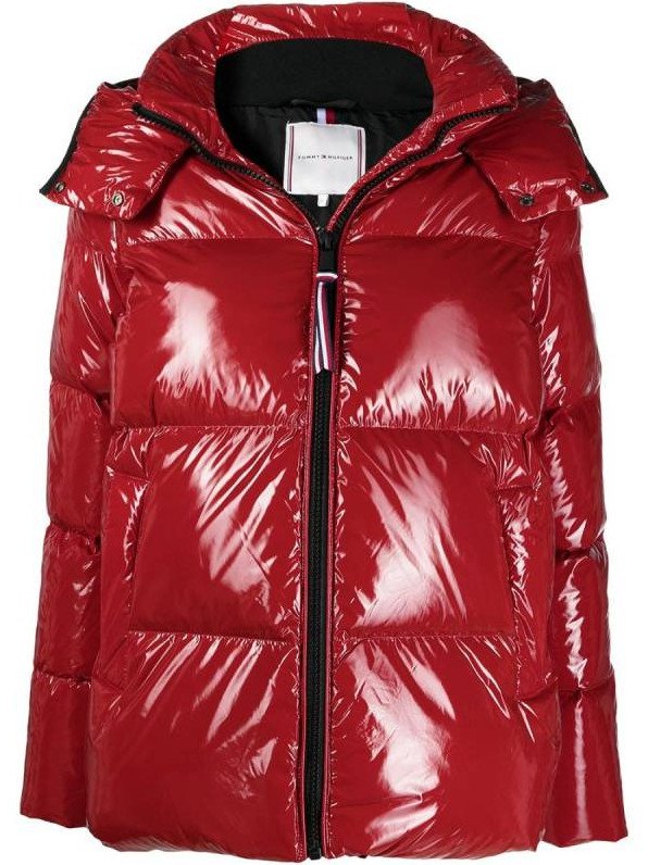 Очень красный пуховик Томми Хилфигер дамский.