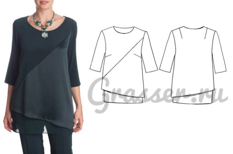 Комбинированная туника из разных тканей.