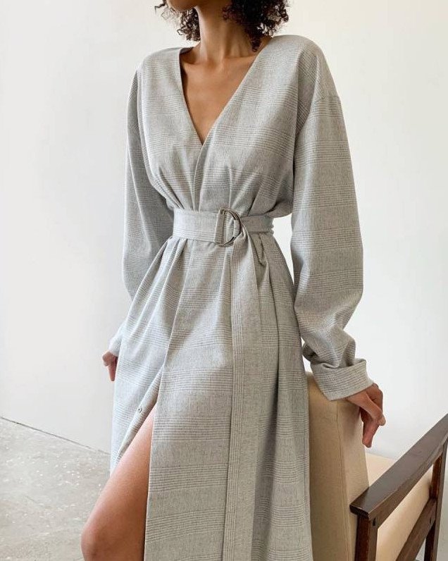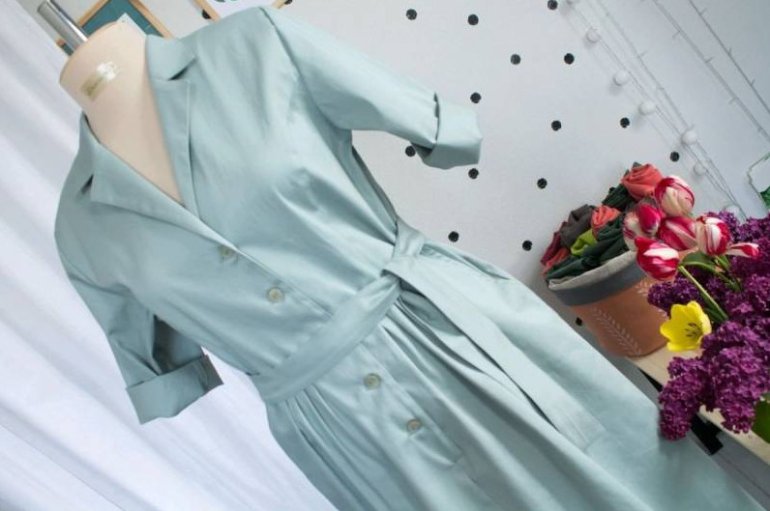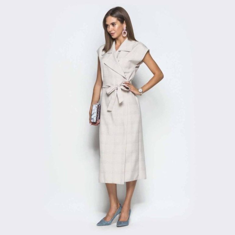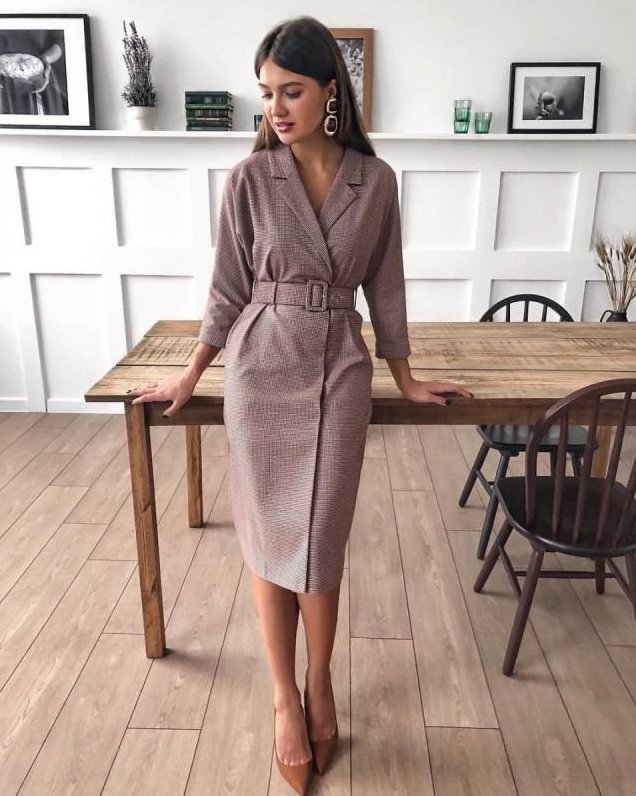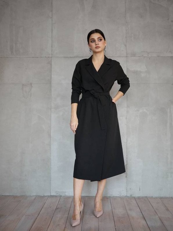 Платье пиджак с поясом.