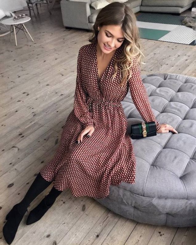Вика Одинцова в платье.