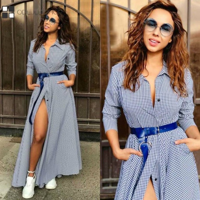 Платье-рубашка с поясом.