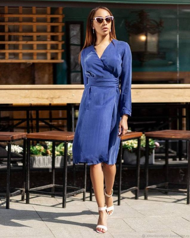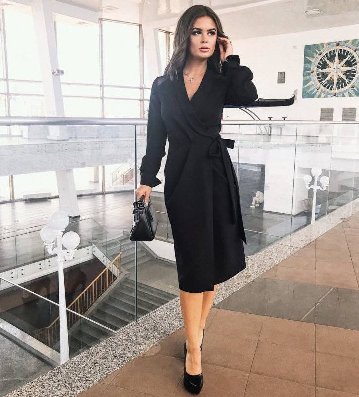 Платье с запахом офисное.