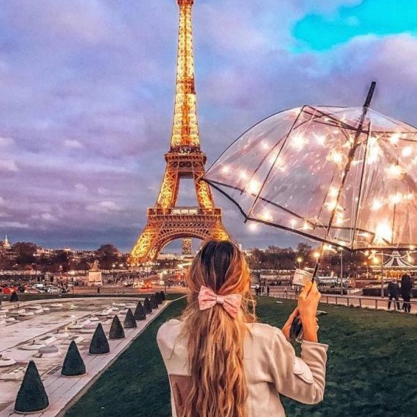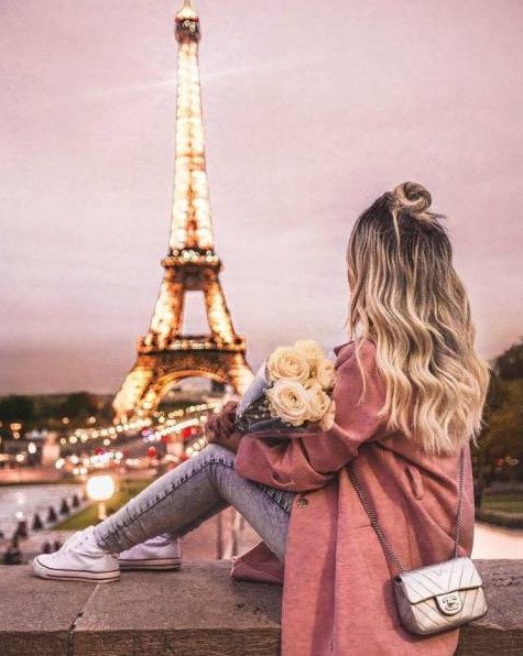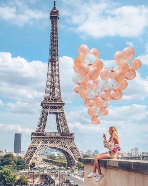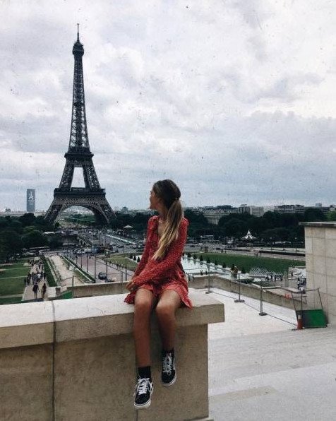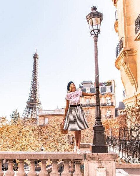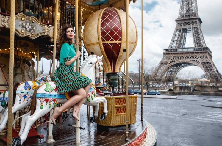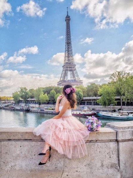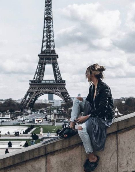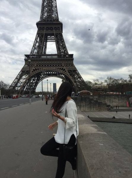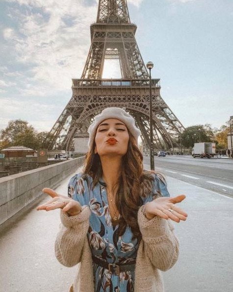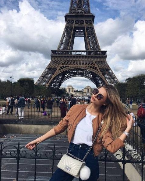 Тина Канделаки на фоне Эйфелевой башни в Париже.