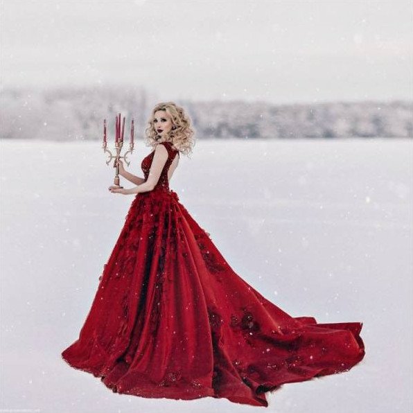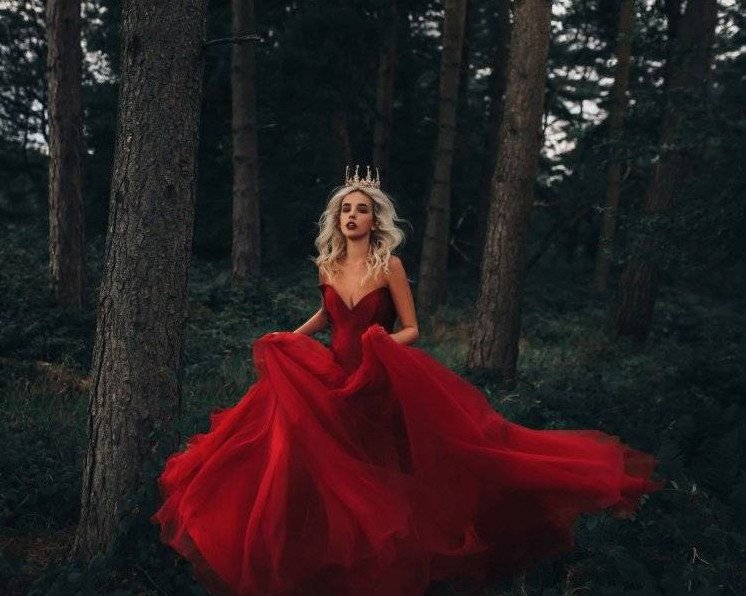 Сочетание цветов бальное красивое платье очень красный и рыжеватый.
