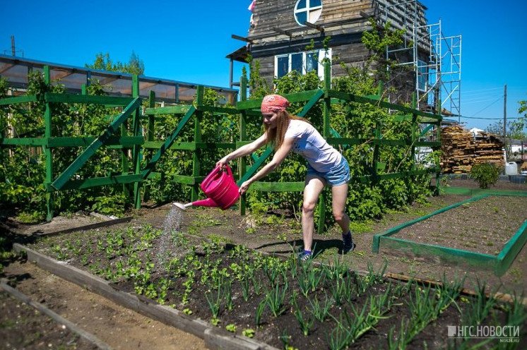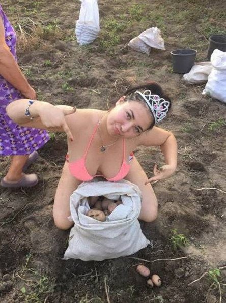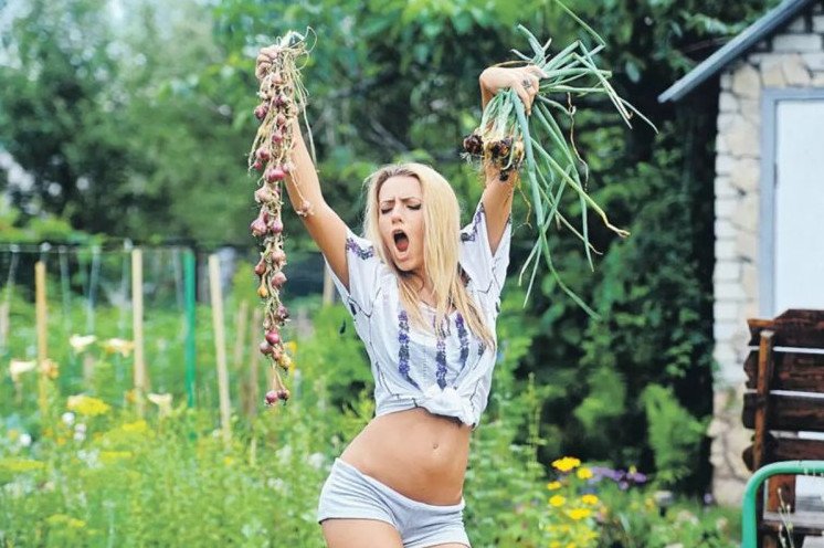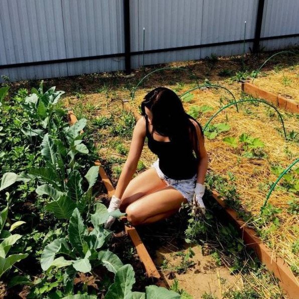Девушка в огороде.