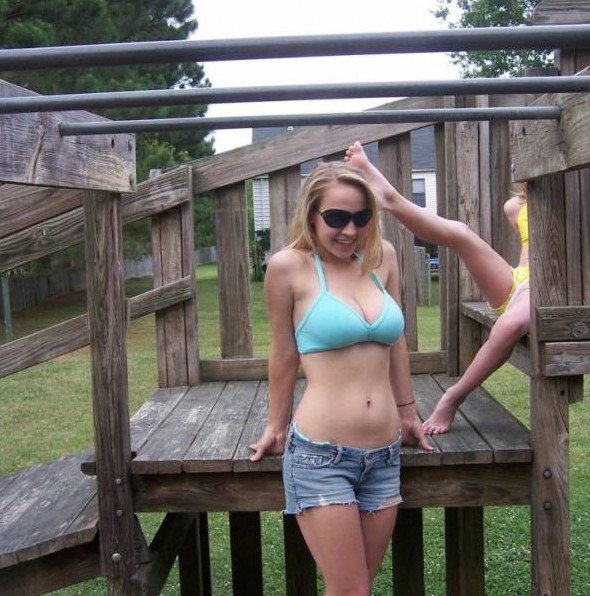Девчонки на даче в купальнике.