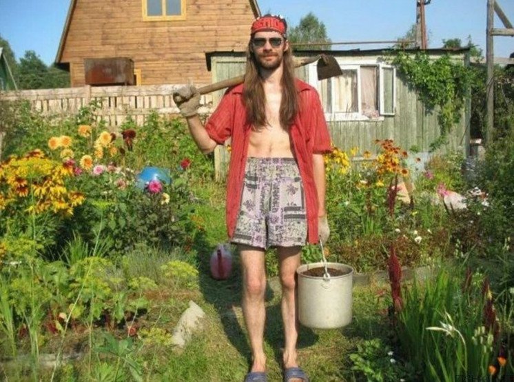 Загораю на грядках.