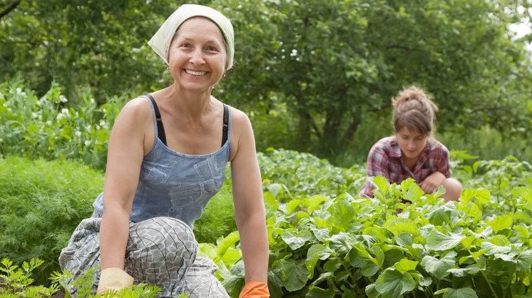 Баба на грядке.