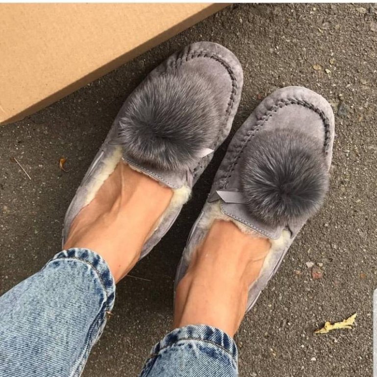 С чем носить меховые мокасины.