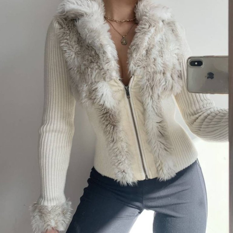 Лохматая кофта на молнии.