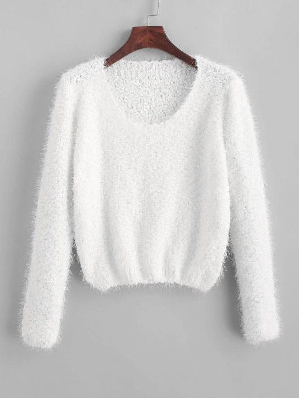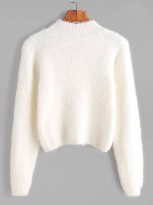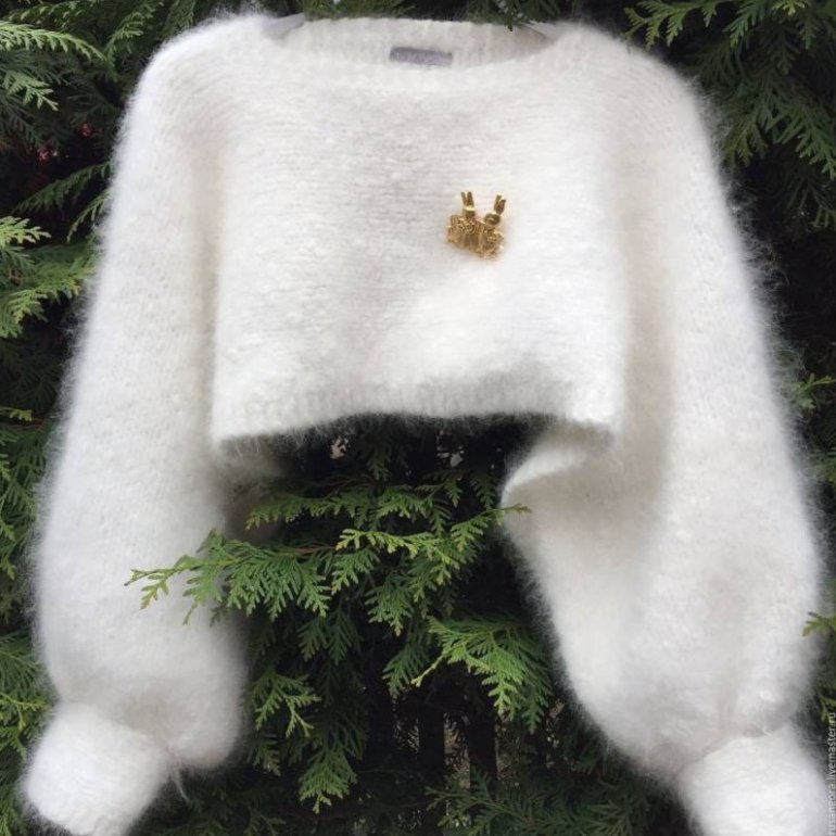 Белоснежный лохматый свитер.