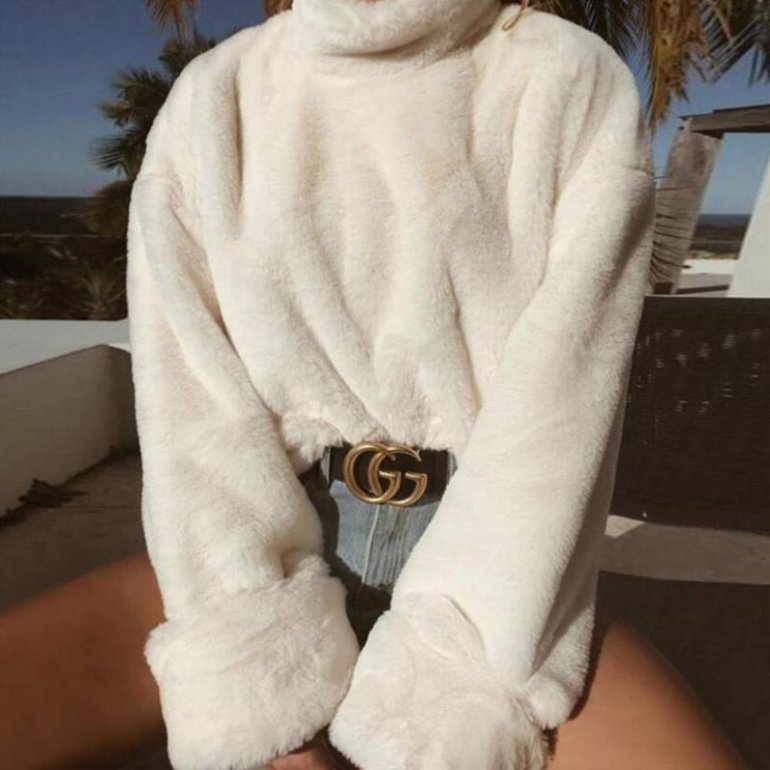 Белоснежная лохматая кофта.