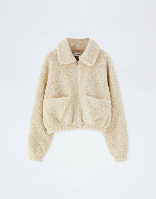 Pull & Bear — Cropped Faux Shearling Jacket.