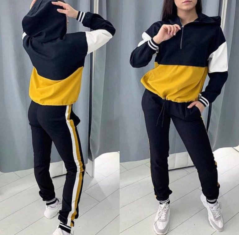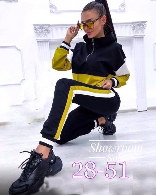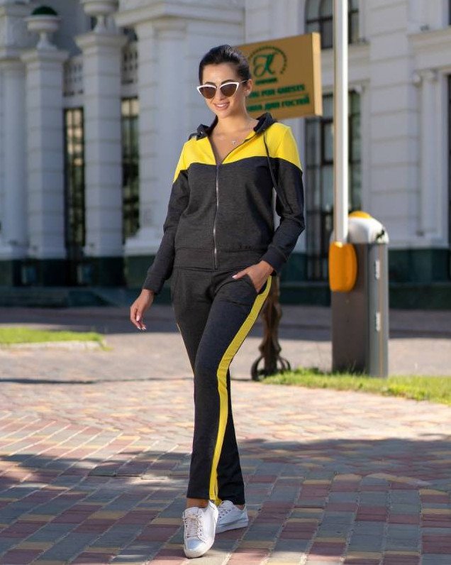 Черно желтоватый спортивный костюмчик дамский.